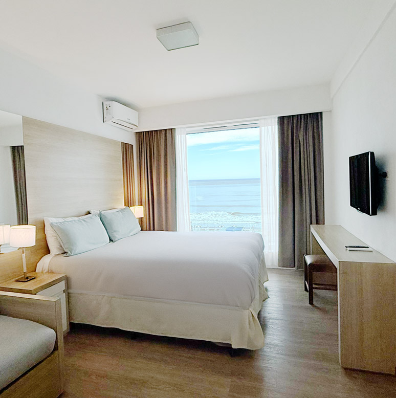 Vista al mar, equipada con aire acondicionado frío/calor, TV de pantalla plana, frigobar, teléfono, caja de seguridad, armario, secador de pelo, artículos de aseo gratuito. Wifi libre. Ventana fija.